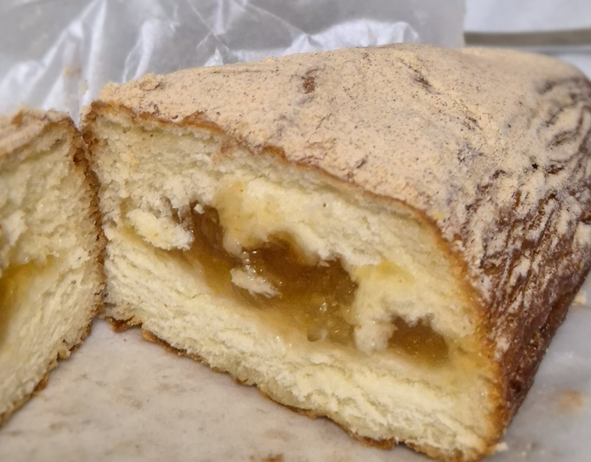 겉은 크로와상의 결에서 볼 수 있듯 바삭하게 먹을 수 있습니다. ㅎㅎ 신기하게도 도넛 안에는 크로와상이나 패스츄리 같은 결은 느껴지지 않았고 도넛의 빵을 느낄 수 있었어요.ㅎㅎ 과육이 씹히는 사과 필링도 꽤 넉넉하게 들어 있고, 빵도 뻑뻑하지 않아 부담 없이 먹을 수 있었습니다. ㅎㅎ