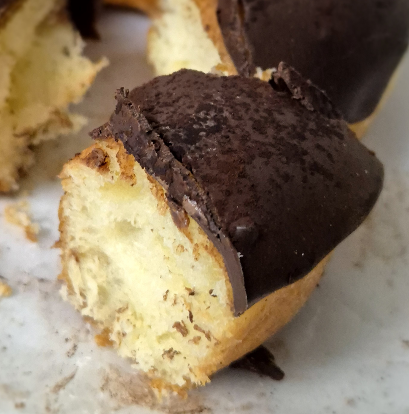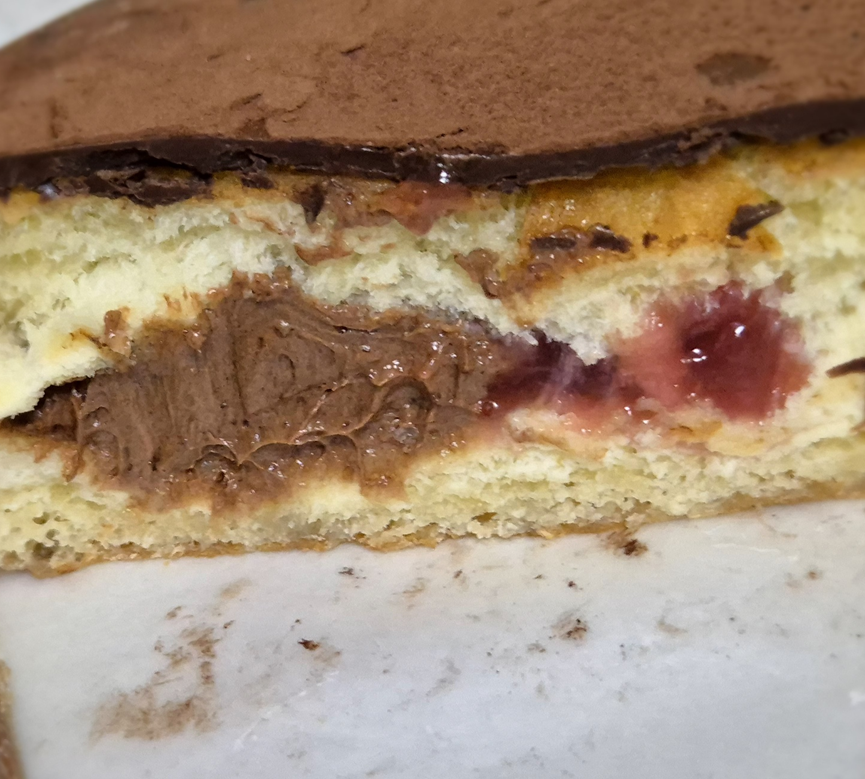 빵을 잘라 보면 아무 것도 없어요.ㅎㅎ 필링이 들어가 있지 않은 그냥 평범한 빵입니다.ㅎㅎ 다른 빵보다 조금 묵직하고 다소 뻑뻑하게 느껴지는데 기름을 적게 사용한 것 같이 느껴지더라고요! 초코 커버는 두툼하게 올라가 있어 겉만 훑은 초코가 아니라 초코맛이 진하게 느껴졌습니다. ㅎㅎ 제로 슈거라고 해도 요즘 기술이 워낙 좋아서 일반 초코와 다른 것을 못 느꼈어요!ㅎㅎㅎ