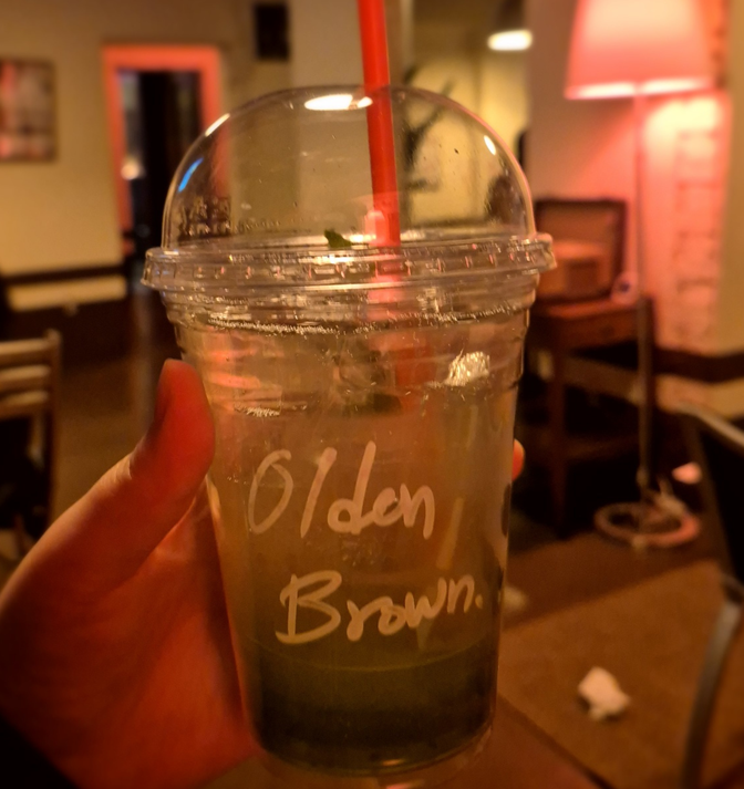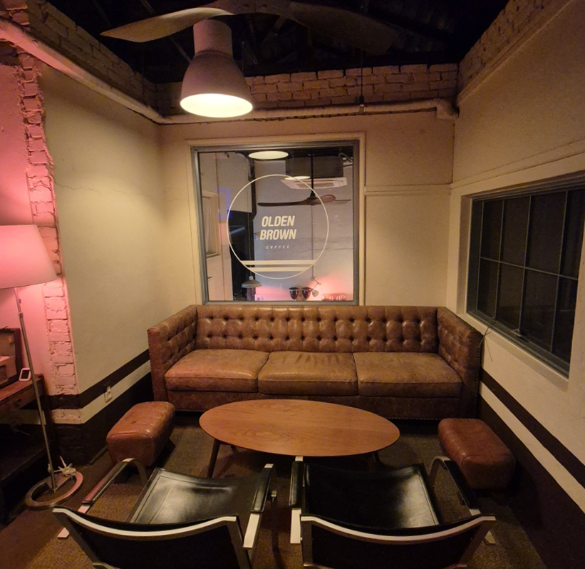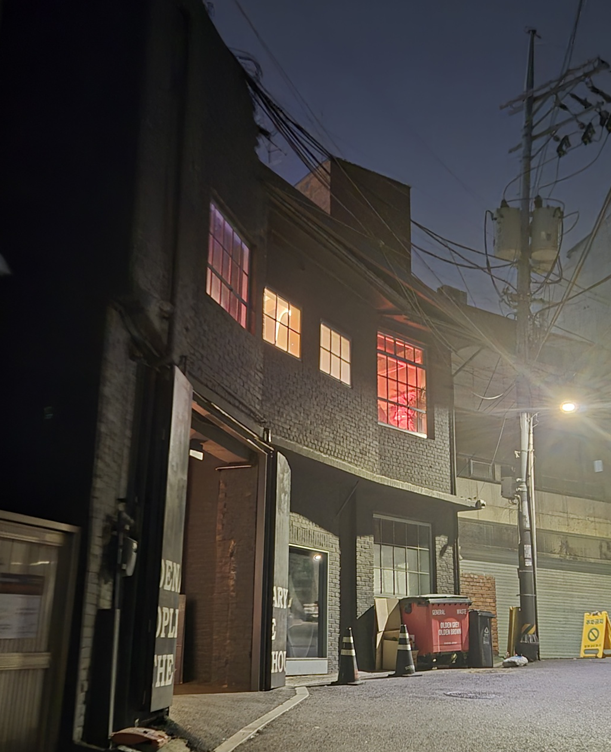 늦은 시간에 가서 사실 입구를 못 찾고 있었어요. 앞쪽은 올덴그레이로 레스토랑으로 운영되고 있는데 늦은 시간엔 문을 닫아서 올덴 브라운은 건물 뒤로 가야 들어갈 수 있었습니다.