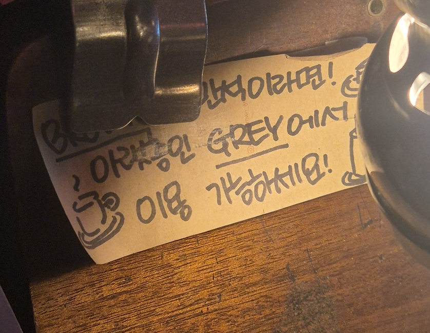 브런치와 맥주도 주문할 수 있고, 만석일 때는 레스토랑으로 이용되는 grey에서도 이용이 가능했습니다. 저희도 브런치를 먹고 싶었는데 이미 마감이 되었더라고요.ㅠ