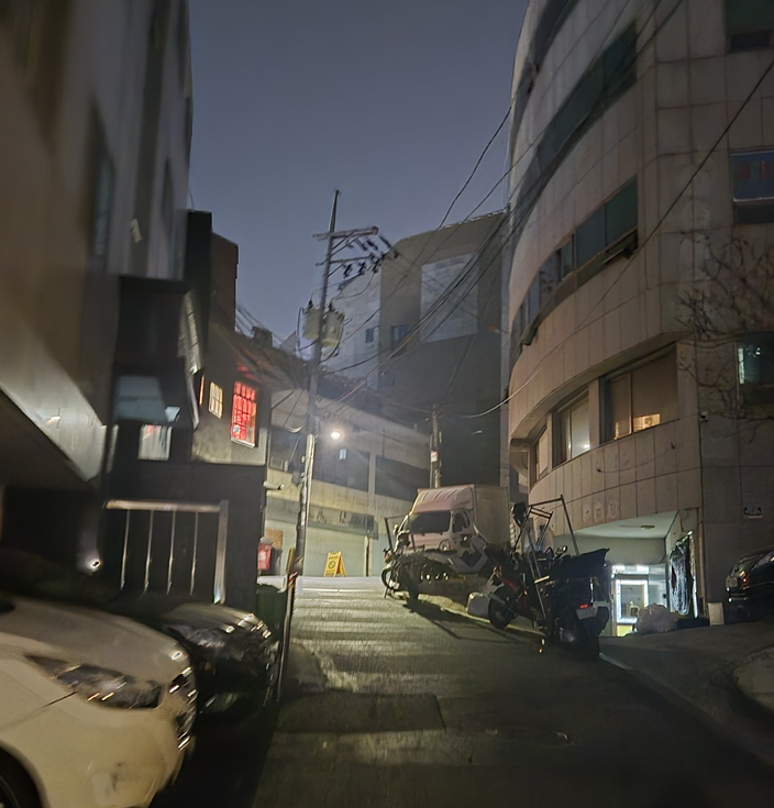 신설동역 방면으로 조금 가다 보면 골목이 하나 나오는데 그쪽으로 들어오면 건물 뒤로 들어가는 길이 나옵니다.