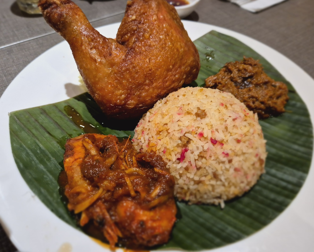 첫 메뉴는 나시보자리입니다. 31.9RM으로 한국 돈 10,600원 정도 되는 가격이에요. 말레이시아에서는 당연 나시르막이 유명하지만 앞으로 계속 먹을 것 같아 나시 보자리를 주문해 봤습니다. ㅎㅎ 건새우가 들어간 세 가지 색의 코코넛 밀크 밥에 닭튀김, 삼발 소스, 새우가 나오는 요리예요.