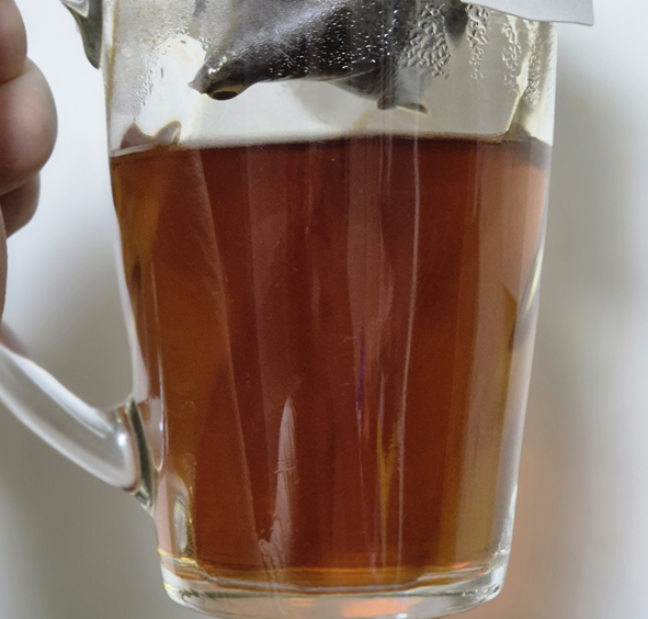 티백을 컵 위에 걸어 주고 따뜻한 물을 천천히 부어줍니다.