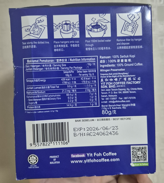 저는 말레이시아 여행 갔을 때 말레이시아에서 화이트 커피를 꼭 사야 하는 것으로 생각했는데 생각해 보니 사바 커피를 깜빡하고 안 샀더라고요! 위에 있는 커피도 말레이시아 현지 친구가 추천해 준 커피라 맛있습니다.