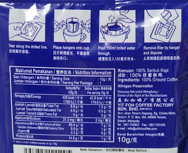 말레이시아에서 유명한 코타키나발루 사바 떼놈 드립커피입니다. 10g씩 8 티백이 들어 있어요. 말레이시아 사바의 전통 커피 문화에서 온 것으로 유명한데요.