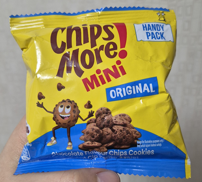 먼저 칩스 모어 미니 오리지널입니다. 초코칩 쿠키로 큰 번들로 되어 있는 것 중에서 핸디팩으로 가져다 주었어요.