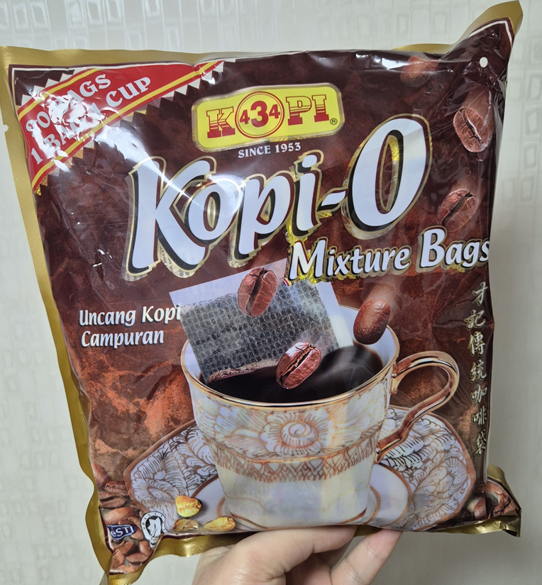 말레이시아의 전통 커피 브랜드인 Kopi434의 Kopi-O Mixture bags입니다. Kopi-O는 설탕이 없는 전통 말레이시아식 블랙 커피라고 해요. 고소하고 진한 풍미가 특징입니다.ㅎㅎ