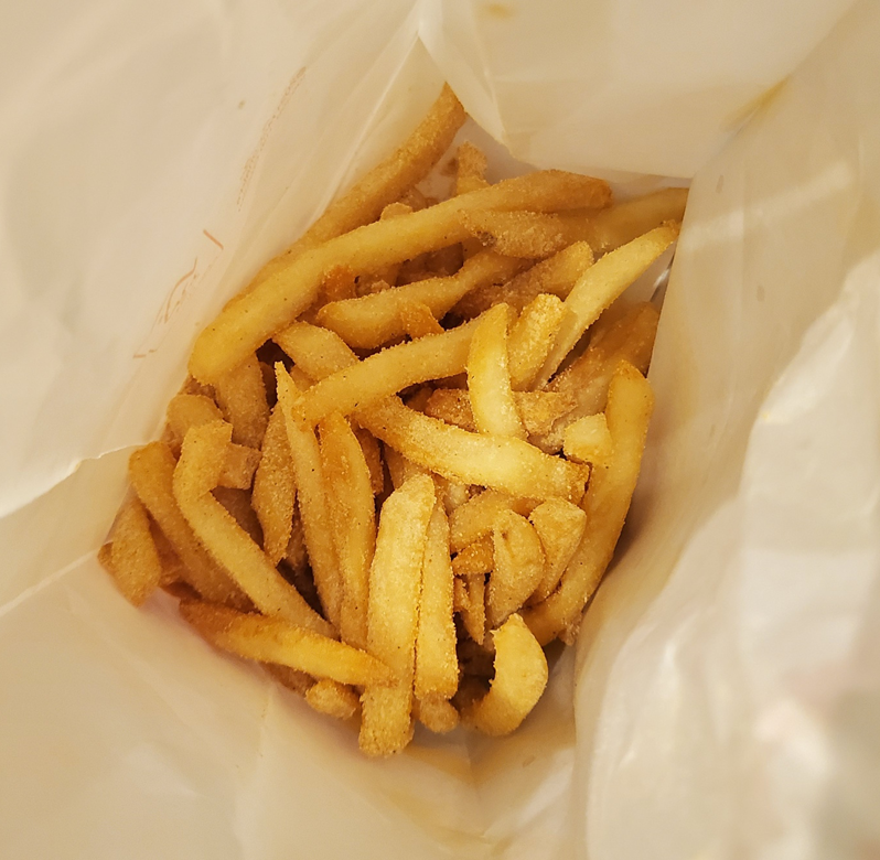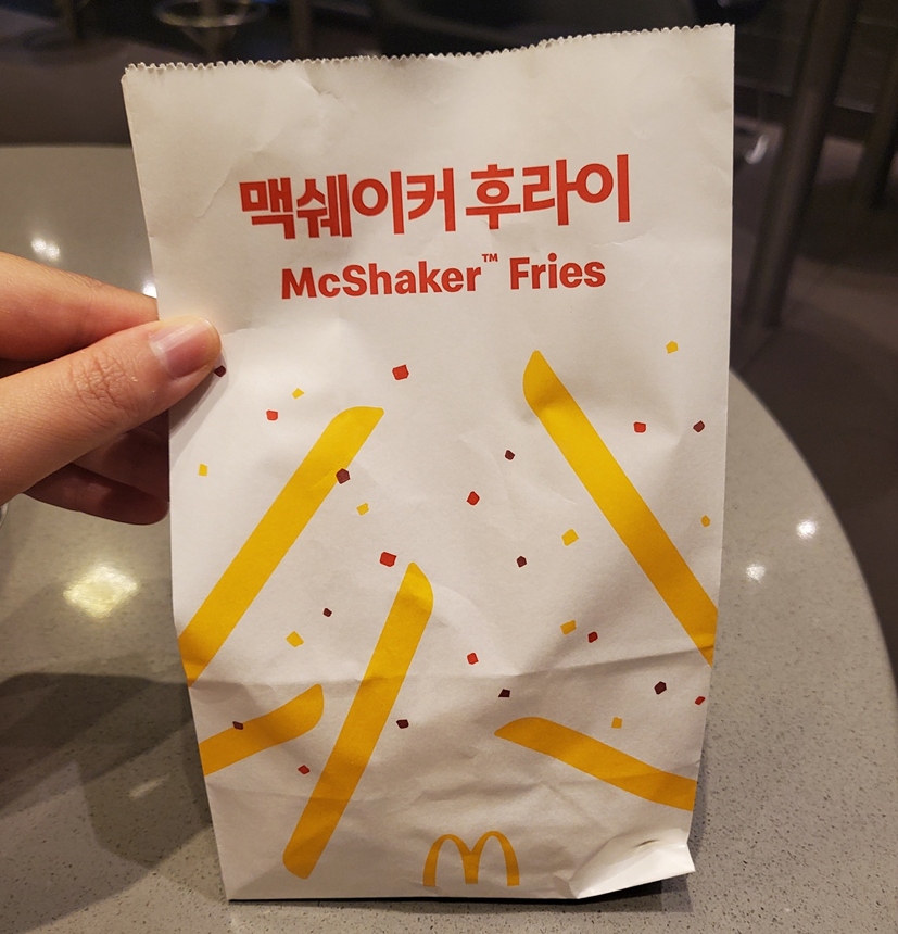 따로 이렇게 종이봉투도 주기 때문에 감자튀김 때려 넣고! 시즈닝도 뿌려주면 됩니다!ㅎㅎ 다만 인절미 가루라 그런지 입자가 많이 곱더라고요! 뜯자마자 인절미 가루 파티를 했으니ㅠ 드시는 분들 조심해서 뜯으세요~~ㅎㅎ 사정없이 흔들어주세요!!ㅎㅎ