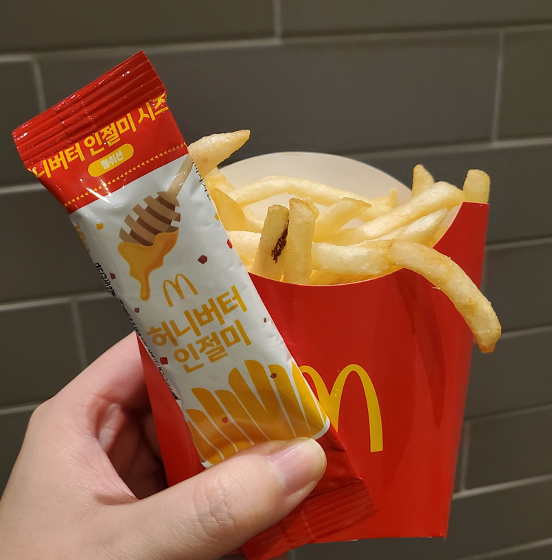 허니버터 인절미 후라이는 시중에 있는 허니버터 감자칩 맛이랑 비슷한 것 같으면서도 인절미 가루가 들어가서 그런지 조금 더 달고 간식 같은 느낌이 많이 들었어요.ㅎㅎ 맛있었습니다. ㅎㅎ 그러나 식사용으로 했을 때 식사에 어울리는 맛이라기보다는 과자의 맛으로 느껴지기 때문에 뭔가 어색하다고 느껴졌어요!