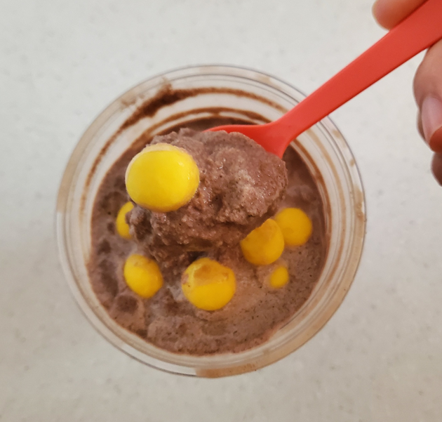 메추리알 노른자가 동동 띄어져 있는 것 같은 모습의 외계인의 바나나킥 블라스트입니다. ㅎㅎ 포장을 해왔더니 많이 녹아버렸네요..ㅠㅠ 초코 바나나 블라스트 위에 바나나 프레첼 볼이 올라가 있는데요, 정말 맛있더라고요!ㅎㅎ 많이 달까 걱정했는데 생각보다 덜 달았고, 빼빼로 데이 때 주고받던 바나나맛 빼빼로 맛이랑 비슷했어요.ㅎㅎ 블라스트는 스푼이랑 같이 주셔서 저렇게 하나 씩 떠먹을 수 있었습니다. ㅎㅎㅎ