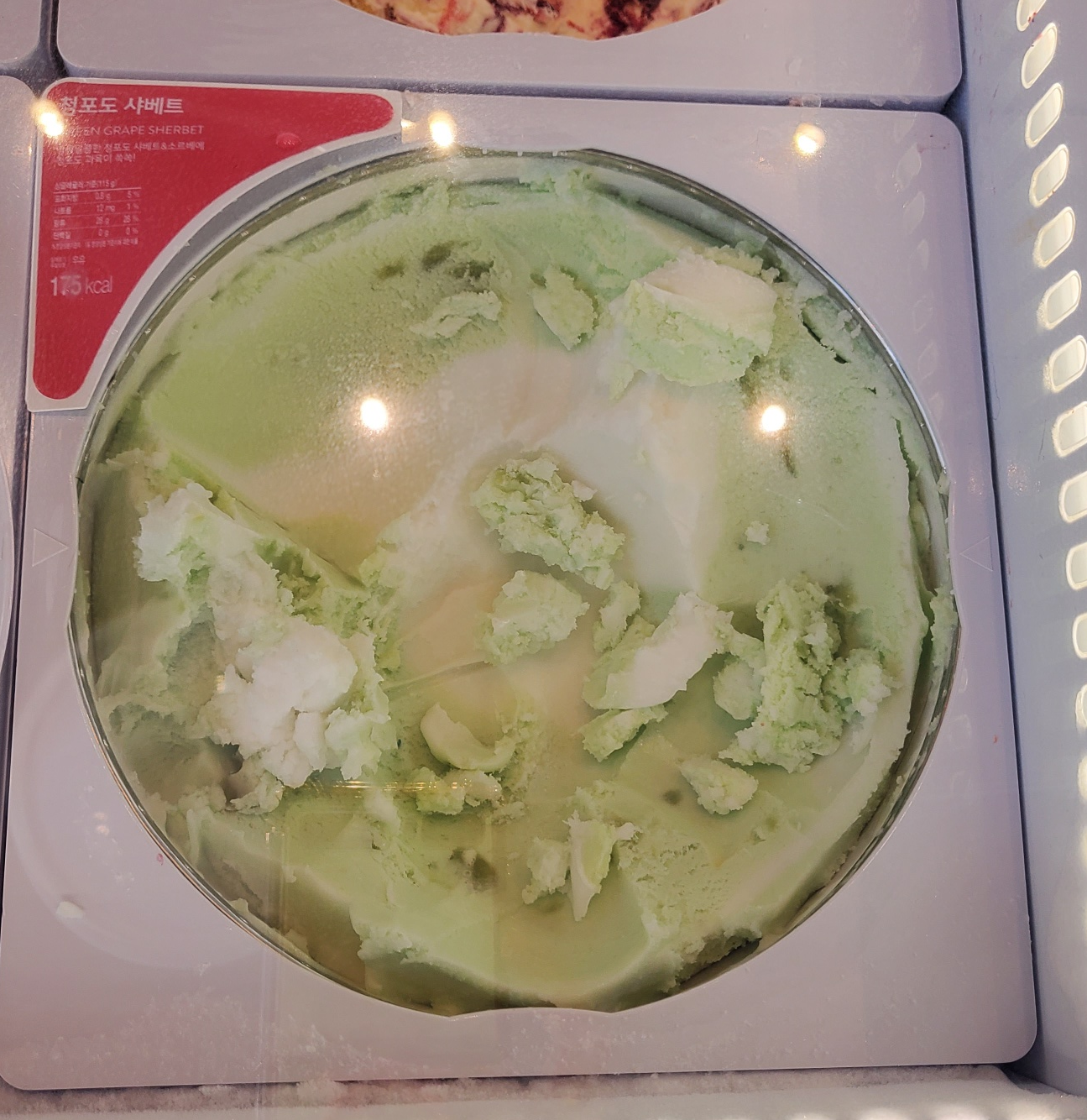청포도 샤베트와 청포도 소르베가 섞여 상큼하고 시원하게 즐길 수 있는 맛이라고 하더라고요!ㅎㅎ 샤베트는 우유가 들어간 것, 소르베는 우유가 들어가지 않은 것으로 샤베트보다 소르베가 더 부드럽다고 하네요!ㅎㅎ