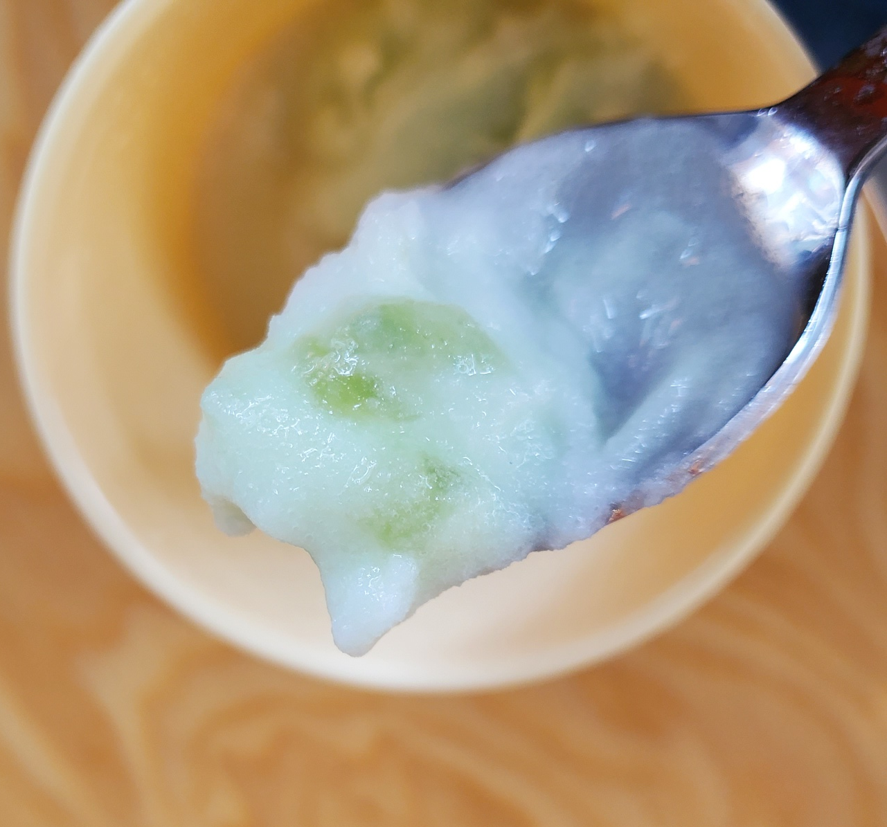 청포도 샤베트에는 청포도 과육이 들어가 있다고 했는데 먹는 내내 보이지 않더라고요..! 그래서 내가 못 찾는가 보다! 하면서 먹는데 거의 다 먹어갈 때쯤 초록색 덩어리가 보이더라고요!ㅎㅎ 골고루 섞이지 않았던 모양입니당..ㅎㅎ 과육의 맛은 그렇게 크게 느껴지지 않았어요. ㅎㅎ