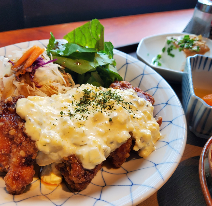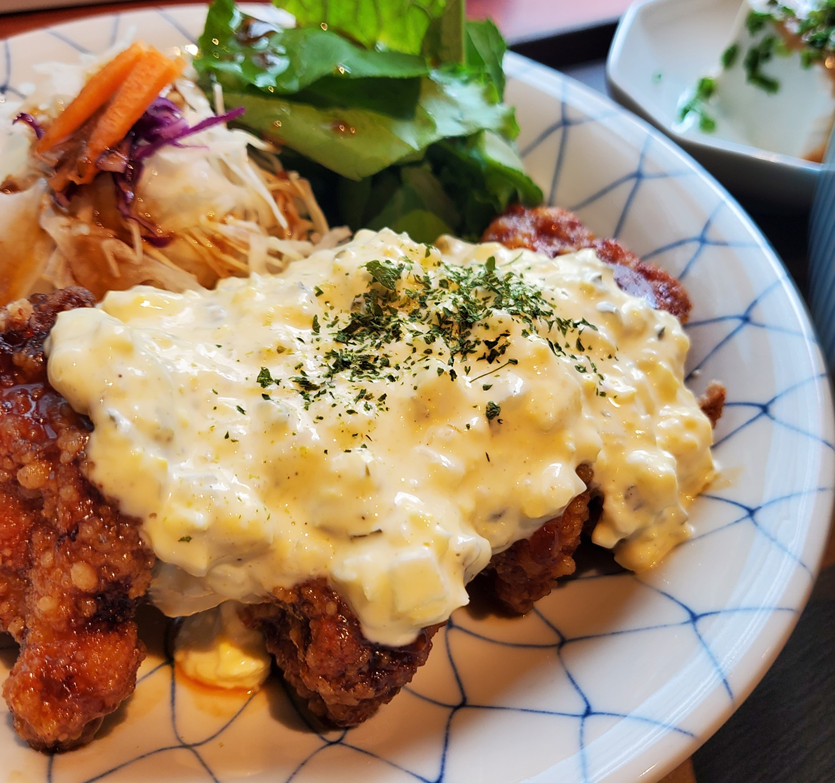 먼저 치킨난반입니다. ㅎㅎ 난반소스와 타르타르가 뿌려진 치킨 요리인데요! 간장, 식초 등의 맛이 나는 소스에 튀긴 닭은 적셔서 그 위에 타르타르소스가 올라옵니다!ㅎㅎ