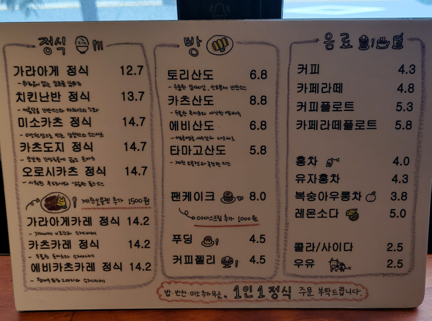 그리고 저는 고민 끝에 치킨난반 정식을 주문했습니다. ㅎㅎ 밥, 반찬, 장국은 무료로 추가가 되더라고요!ㅎㅎ 산도 종류도 인기가 많더라고요! 많이들 드시고요! 저는 혼자라서 양이 많을 거 같아서 추가 주문은 하지 않았습니다.ㅠㅠ 다음에 동행인을 데려가 같이 먹어야겠어요!ㅠㅎㅎ