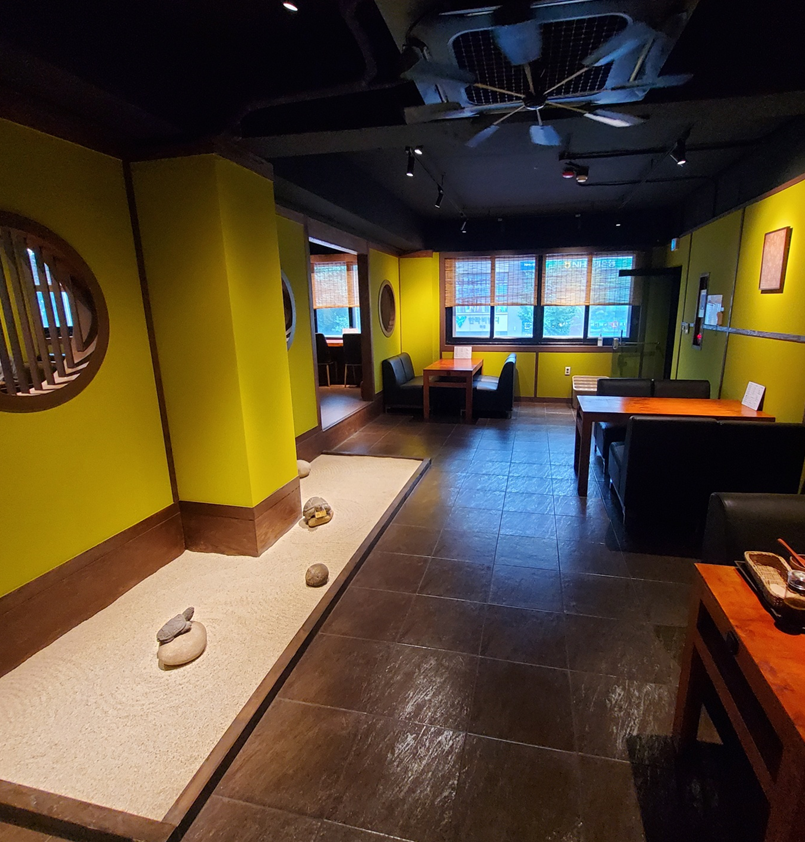 들어가자마자 오와!! 감탄을 하며 들어갔어요.ㅎㅎ 저는 점심 시간이 좀 지난 시간에 방문했었는데 그때에도 식사하는 분들이 계셨어요.ㅎㅎ 무엇보다 일본을 연상하게 하는 인테리어가 헉! 하게 했습니다. ㅎㅎ 분위기도 너무 고요하고, 차분하더라고요!! 물론 늦은 점심시간이라서 그런 듯해요.ㅎㅎㅎ 게다가 일본인 분들이 와서 식사를 하고 계시더라고요! 이 동네에 중국인도 아니고 일본인이 올 일이 없는 동네인데..? 하면서 귀를 의심했습니다. ㅎㅎ 스고이를 연신 외치더라고요.ㅎㅎ ㅎ