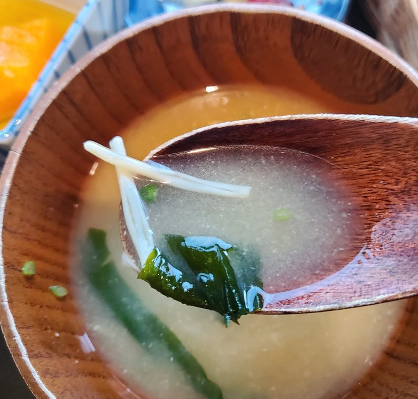 국도 잘 안 먹는 편인데 식사를 하고 마지막으로 마시는 미소가 깔끔하니 좋더라고요!ㅎㅎ 일반적인 미소국이었지만 전반적인 식사와 잘 어울리고, 깔끔한 국물 마무리였습니다. ㅎㅎ