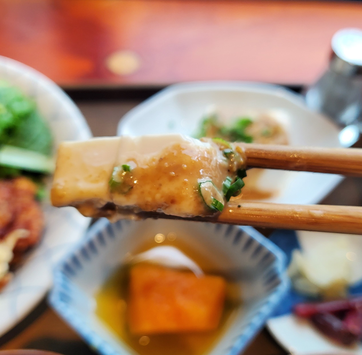 연두부는 다진 파와 땅콩소스로 보이는 소스가 위에 뿌려져 있어요.ㅎㅎ 쪽파향이 강해서 슴슴한 연두부의 맛에 가미를 더해주었습니다. ㅎㅎ