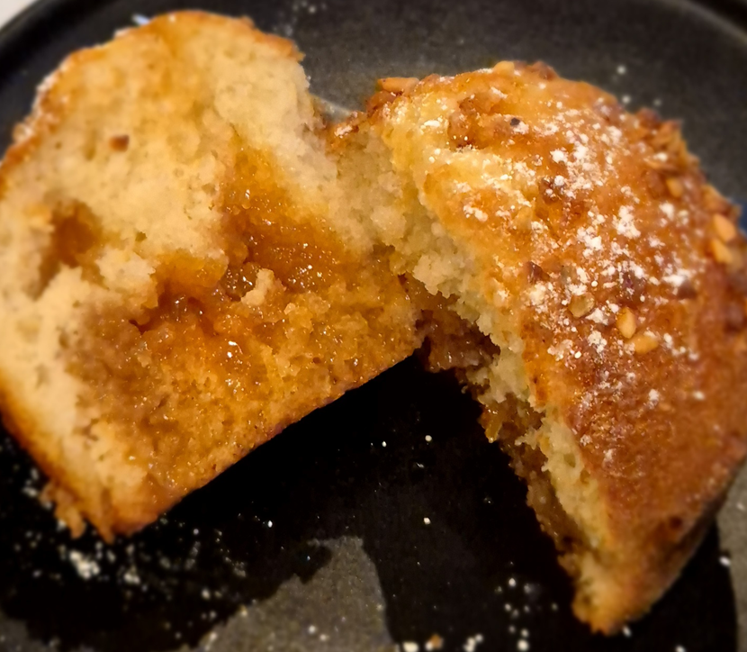 머핀 안을 보면 촉촉하게 카라멜이 머금어져 있습니다. 스며들어 눅눅해지지 않고 카라멜이 그대로 촉촉하게 있었습니다. 버터가 들어가 고소하고 고소함과 카라멜의 달콤함이 잘 어우러졌지만 카라멜이 밑으로 뭉쳐 있어 먹을 때 잘 분배해 먹어야 더 맛있게 느껴집니다.