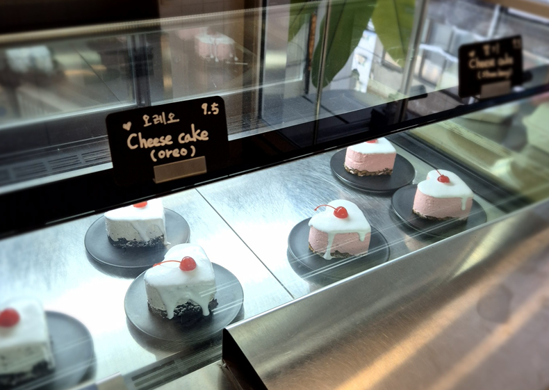 시그니처 디저트로 판매되고 있는 오레오 케이크, 딸기 케이크입니다.