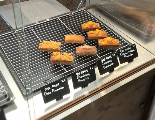 카운터 앞 진열장에 빵들이 진열되어 있습니다. 미리 온 언니가 시그니처 케이크 대신 버터 카라멜 머핀(4,800원)을 주문해 뒀더라고요.ㅎㅎ