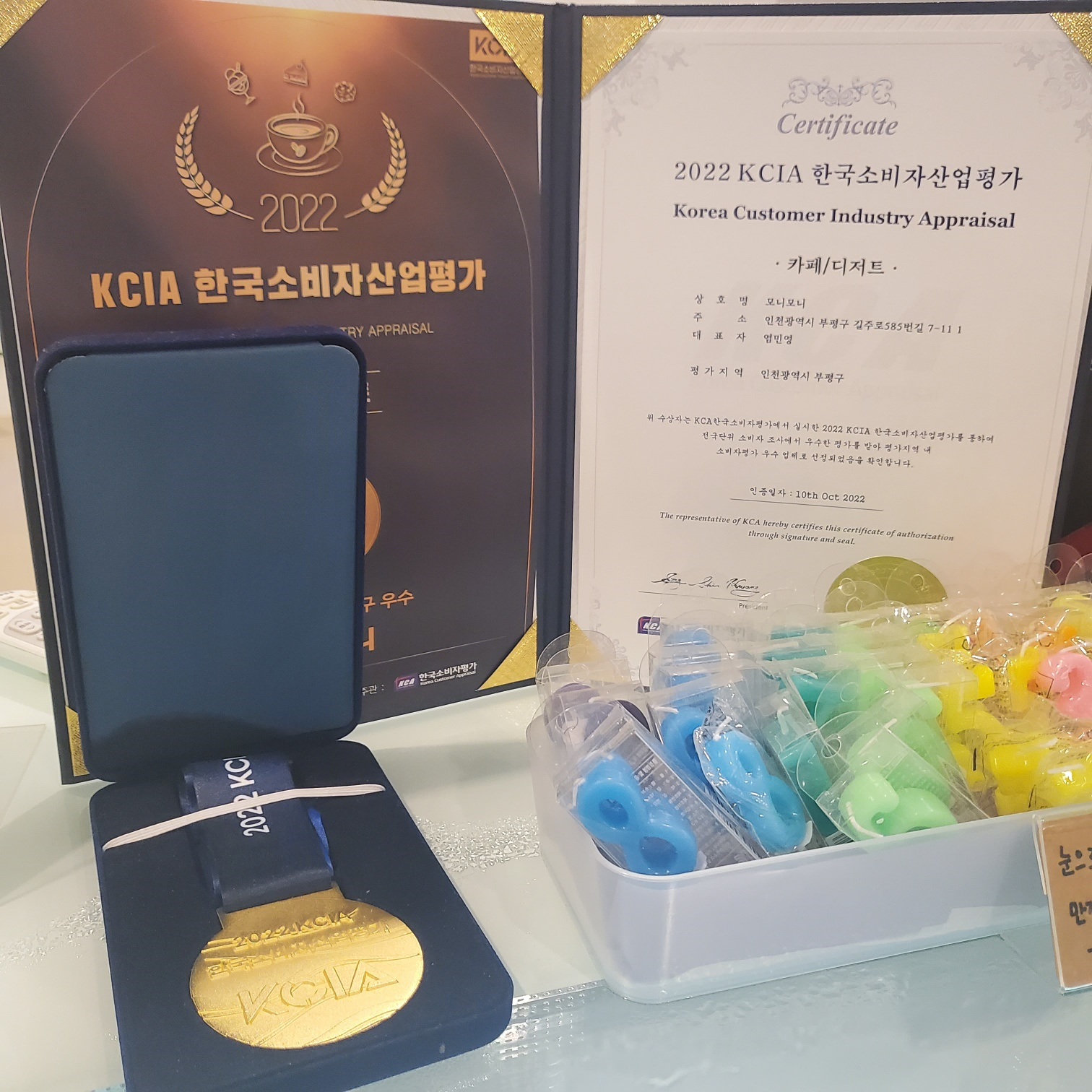 쇼케이스 위에는 다양한 초를 구매할 수도 있는데요. 무엇보다 KCIA 한국소비자산업평가서와 메달이 있는 것이 눈에 띄었어요! 소비자 평가 우수 업체로 선정된 곳이에요.ㅎㅎ
