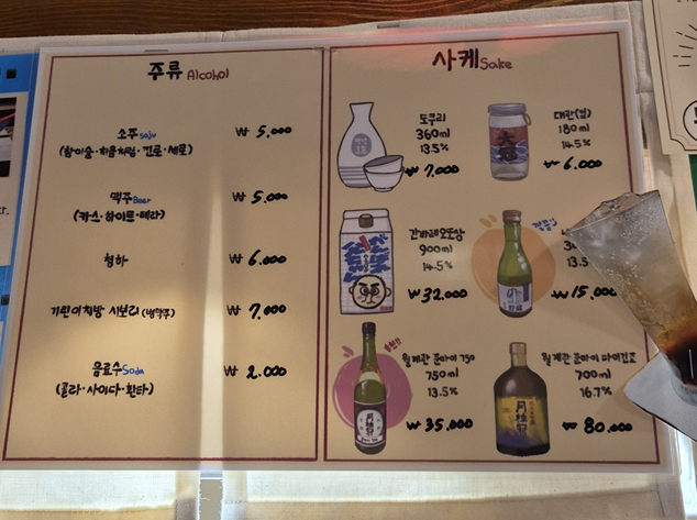 2인석 두개, 4인석 하나에 ㄷ자 바테이블이 있는 작은 식당인데 소소한 디자인으로 꾸며져 있었습니다. 아기자기하게 꾸며 놓으셨더라고요.ㅎㅎ 아늑하니 혼밥하기도 좋은 곳이었습니다.