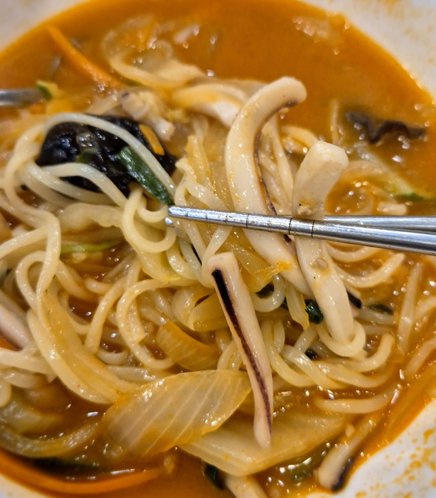 짬뽕에도 오징어나 해물이 오랜 시간 끓여져 퉁퉁 불거나 하지 않고 싱싱하고 탱글한 모습 그대로였어요.ㅎㅎ