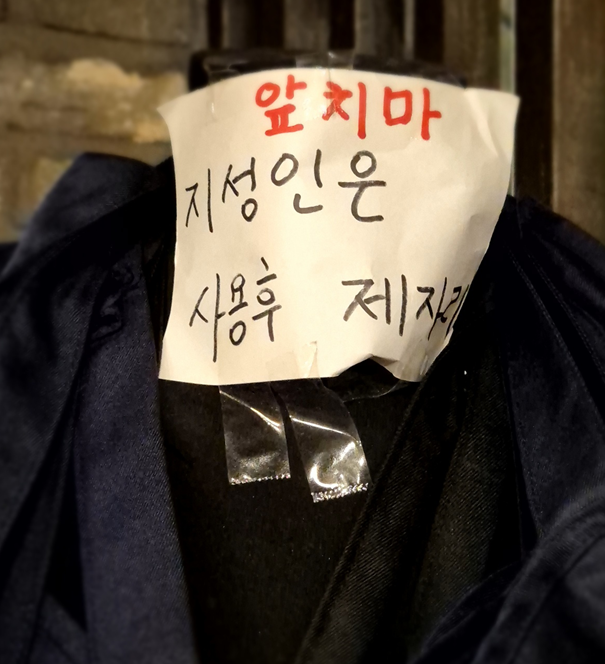 창가 쪽 기둥에 앞치마도 있으니 앞치마 필요하신 분들은 챙기시면 됩니다. ㅎㅎ