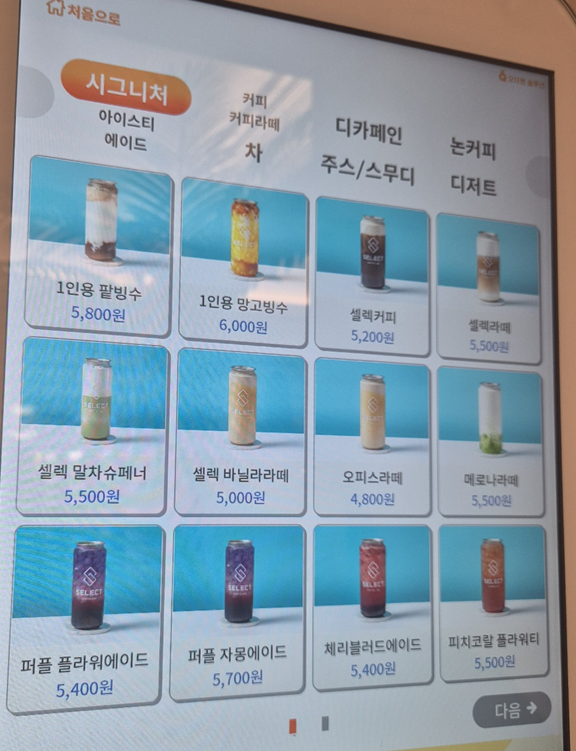 메뉴가 정말 많은데 시그니처 메뉴만 살짝 찍어 봤습니다.ㅎ 저는 늦은 시간이라 퍼플 플라워에이드, 친구는 바밤바라떼를 주문했어요. 그리고 나중에 또 방문해서 메로나라떼를 주문했습니다. ㅎㅎ