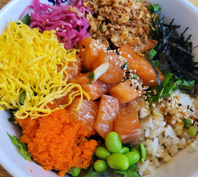 특제 간장 소스로 간이 된 연어라 자극적이지 않고, 담백한 맛을 즐길 수 있었습니다. ㅎ 토핑으로 올라온 날치알, 양파 후레이크가 식감을 더해줬고, 양파와 쪽파로 상큼함을 더해줘 조화로운 맛을 느낄 수 있었어요!