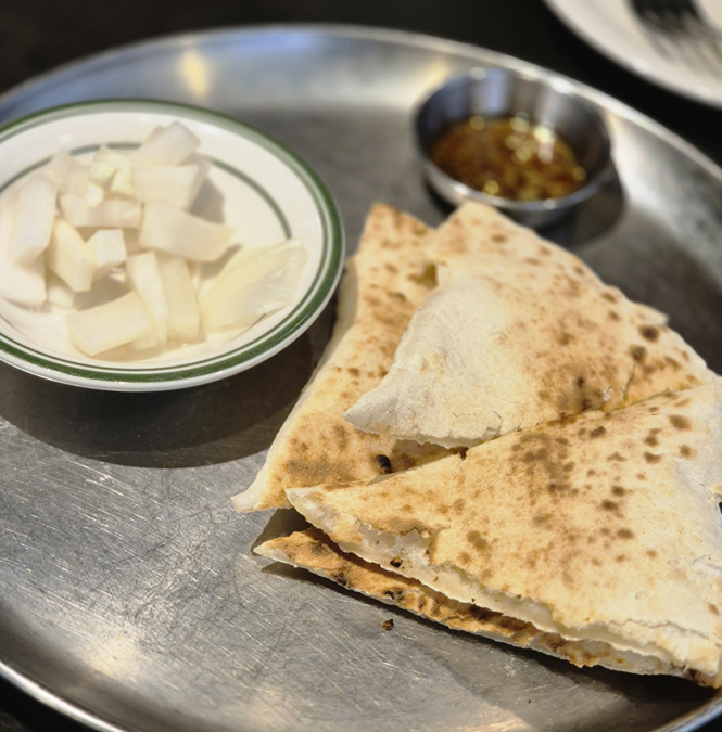 저희는 식전 빵을 주문해서 피클과 올리브유를 함께 가져다주셨어요. 아마 피자 도우를 구워다 주신 것 같은데 따뜻하고 쫄깃하니 입맛을 담백하게 자극하더라고요!