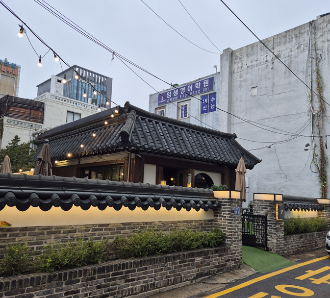 예전부터 한번 가봐야지 했던 곳인데 한옥으로 지어진 외관과 달리 내부는 또 세련된 디자인으로 다른 분위기를 보여주고 있습니다. ㅎㅎ 저희가 갔을 땐 비가 와서 그런지 조금은 한산했지만 이미 도착해 있는 분들도 계셨고, 계속 예약하지 않은 손님들이 방문하시곤 했어요. 이미 예약이 차서 발길을 돌린 분도 많이 계셨습니다. ㅠㅠ