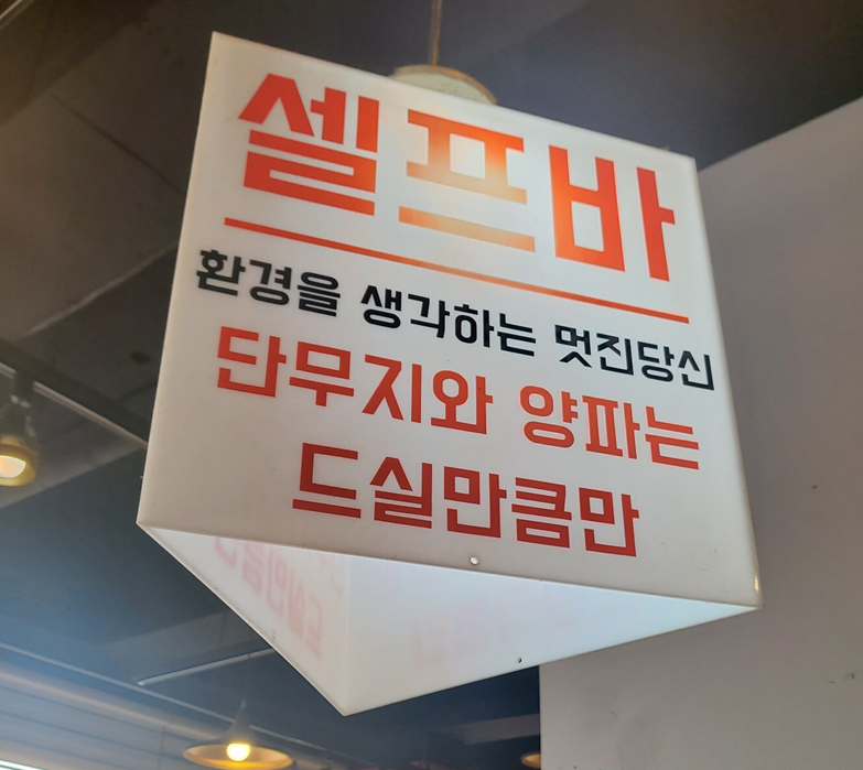 셀프바는 한쪽에 구비되어 있어서 앞치마, 단무지, 양파, 물티슈 등 개인적으로 챙기면 돼요. ㅎㅎ 주문하고 단무지와 양파, 춘장은 가져다주시니 추가로 드실 땐 셀프바를 이용하면 됩니다ㅎㅎ