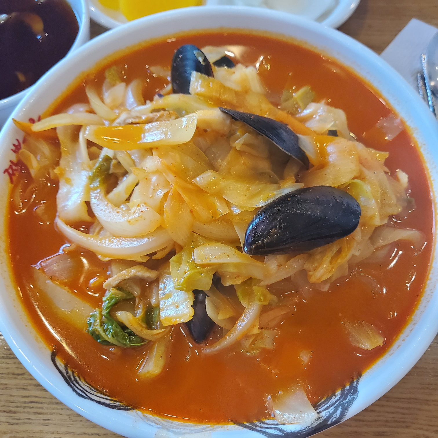 제가 주문한 짬뽕입니다. ㅎㅎ 짬뽕밥을 먹을까 고민하다가 짬뽕으로 선택했답니다. ㅎㅎ 그러다 차돌 짬뽕을 먹을까 고민하다가 근본을 먹어보자 하는 마음에 일반 짬뽕을 주문했어요.ㅎㅎ