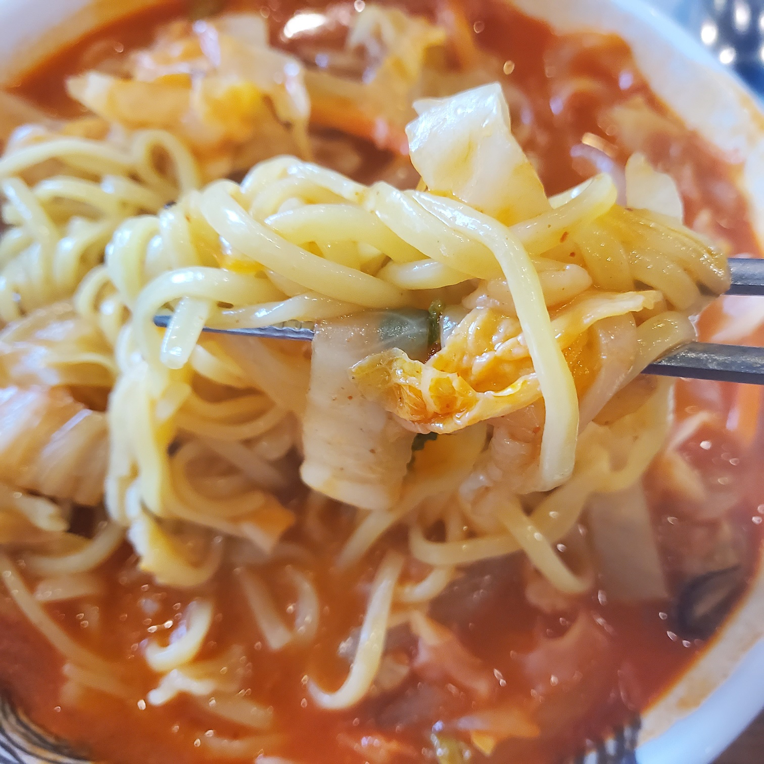 채소만 많은 것이 아니라 면도 한 가득이었습니다!ㅎㅎ 저는 엄마와 반반 나눠먹으려고 반을 덜었는데도 양이 많더라고요!ㅎㅎㅎ