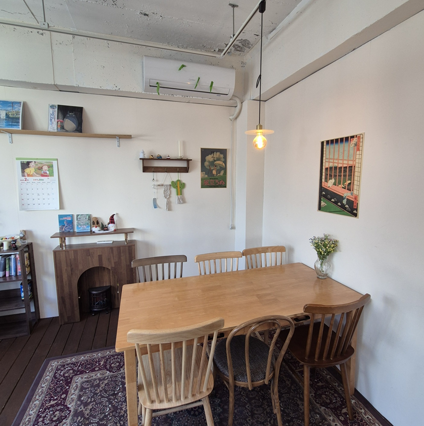 주문하는 곳 바로 왼쪽에는 6인이 사용할 수 있는 테이블이 있어요.ㅎㅎ 그리고 창가 쪽으로도 테이블이 있습니다. ㅎㅎ 이곳에도 곳곳에 지브리 요소가 많아요.ㅎㅎ
