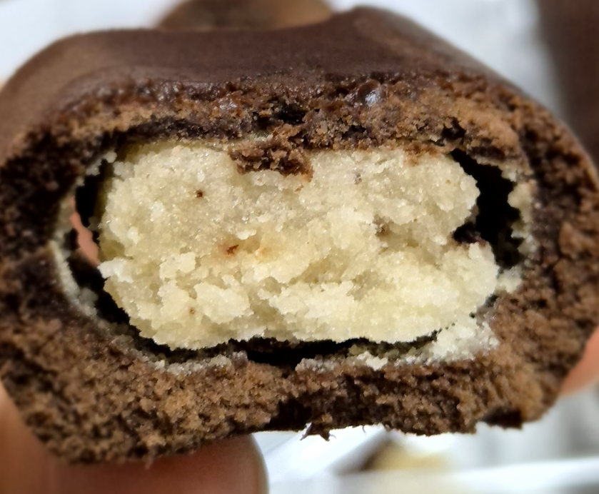 그런데 반을 잘라 보니 초코칩은 볼 수 없었어요. 초코칩은 모양 내는 정도였던 것 같습니다.
