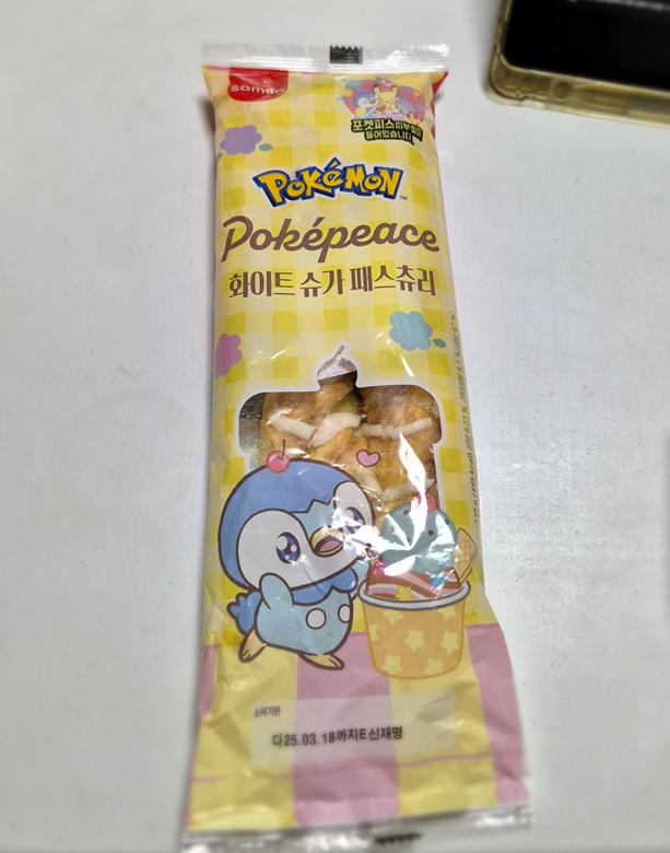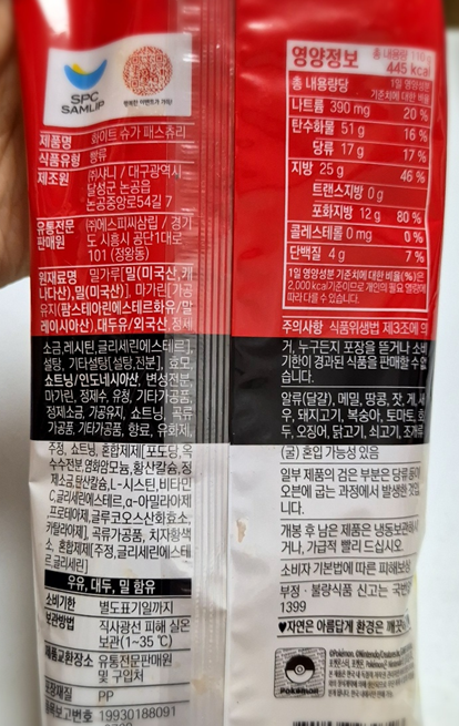 패스츄리 위로 화이트 슈가가 뿌려져 있어요. 그래서 봉지 자체도 많이 끈적거려서 먹기는 다소 불편한 감이 있었습니다.