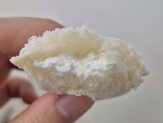 육안으로만 보면 폭신한 시트 안에 바닐라 크림이 발라져 있습니다.