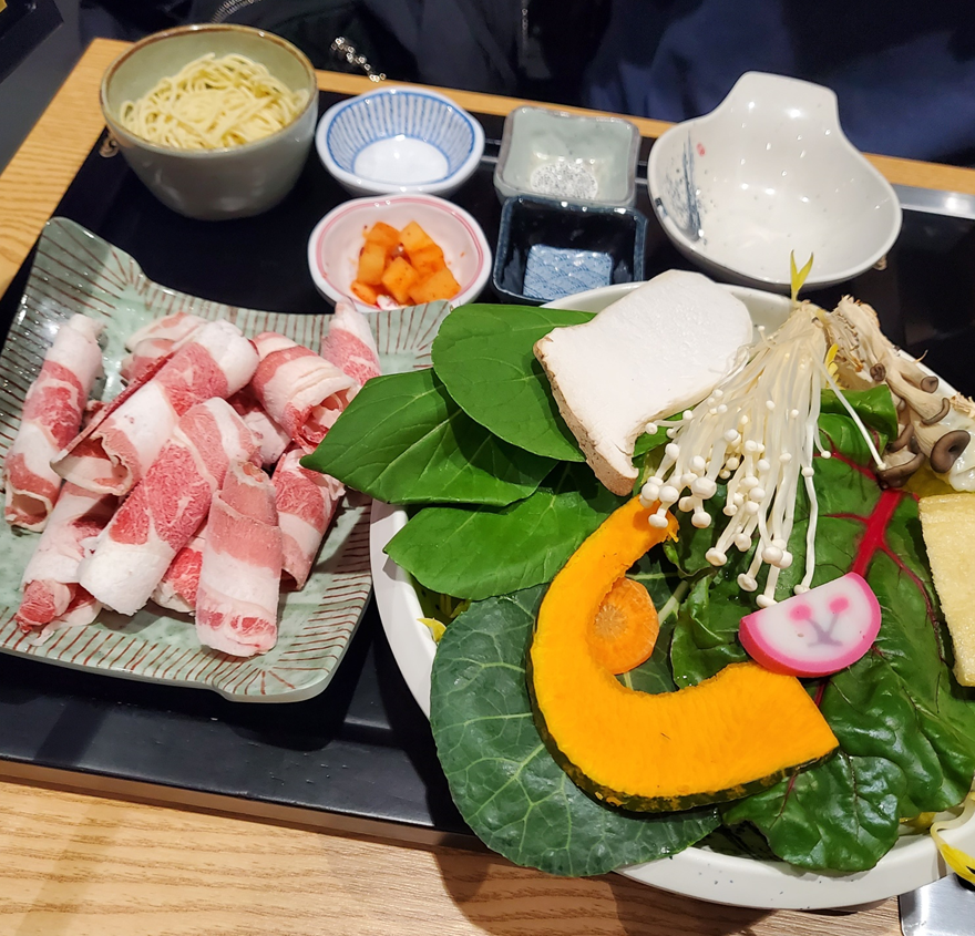 개인적으로는 기름도 너무 많지 않고 가장 깔끔하게 먹을 수 있는 메뉴가 멸치 샤브 목심 세트인 것 같아요.ㅎㅎ 고기는 목심이라서 질겨지지 않게 살짝 익히고 먹어야 해요. 그래도 채소들과 함께 먹는다면 부드럽게 먹을 수 있습니다. 나중에 면을 넣어 먹거나 죽을 끓여 먹을 때도 가장 시원하고 담백하게 먹기 좋은 것 같습니다.ㅎ