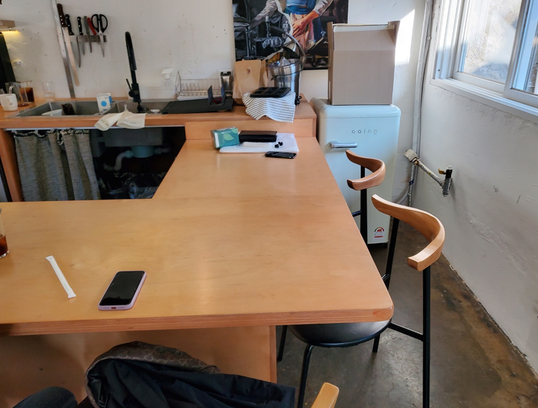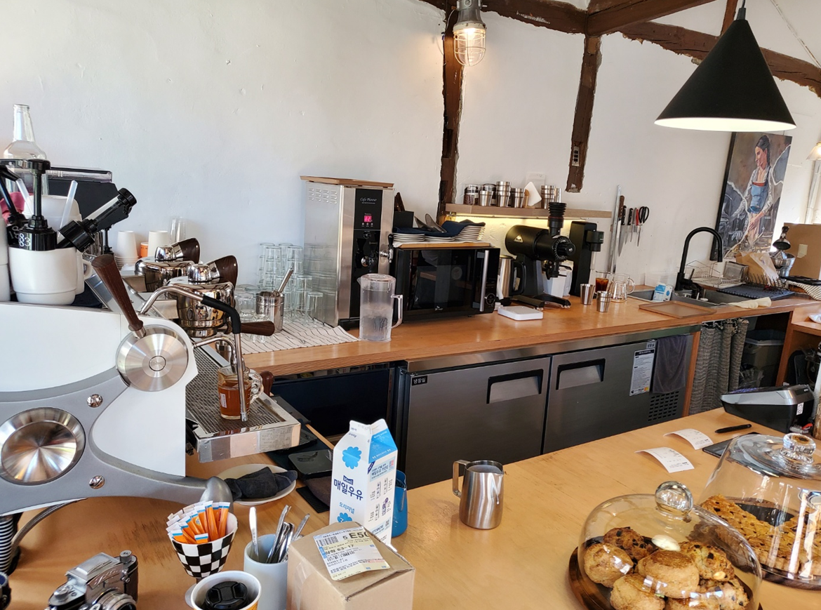 음료 만드는 곳부터 주문하는 카운터, 그리고 손님들이 이용할 수 있는 자리까지 쭉 이어져 있는 바 형식의 테이블입니다. ㅎ 여긴 아무래도 부담이 되는지, 자리가 나면 옮기시는 분들이 많더라고요.ㅎㅎ