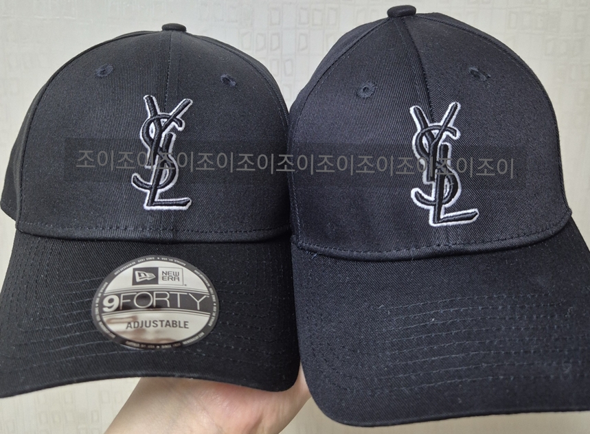 먼저 제 손에 들어왔던 가품과 비교를 하면 YSL 로고부터 다릅니다. 가품의 경우 굵기도 일정하지 않고, 각도나 모양, 로고의 끝처리도 너무나 다른 모습입니다. 정품의 경우 더 먹색에 가까운 검정색이고, 가품은 광택이 있고 청빛을 띄는 검정색이라 두 모자가 완전히 다른 색을 갖고 있어요!
