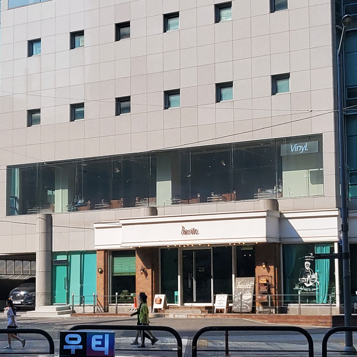 헤비츠 2층에 통유리로 된 곳이 바로 바이닐입니다! 사진이 꼭 에드워드 호퍼의 구도 같네요 ㅎㅎㅎ