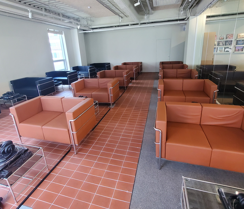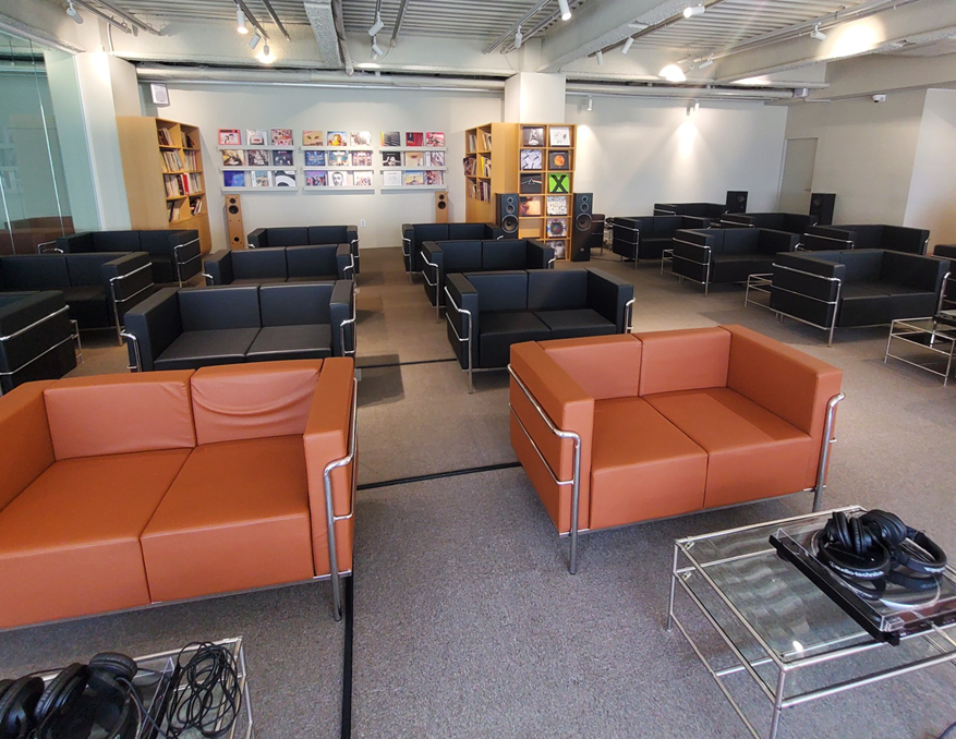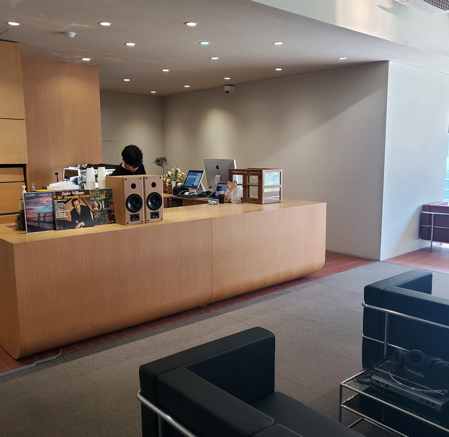 영화관 같아 보이기도 하더라고요! 벽 쪽에 놓여 있는 LP판을 골라 최대 2인 소파에서 마주 보는 주변인들 없이 음악을 즐기실 수 있어요! 통유리로 공간이 분리되어 있지만 모두 사용 가능한 공간들입니다. ㅎ