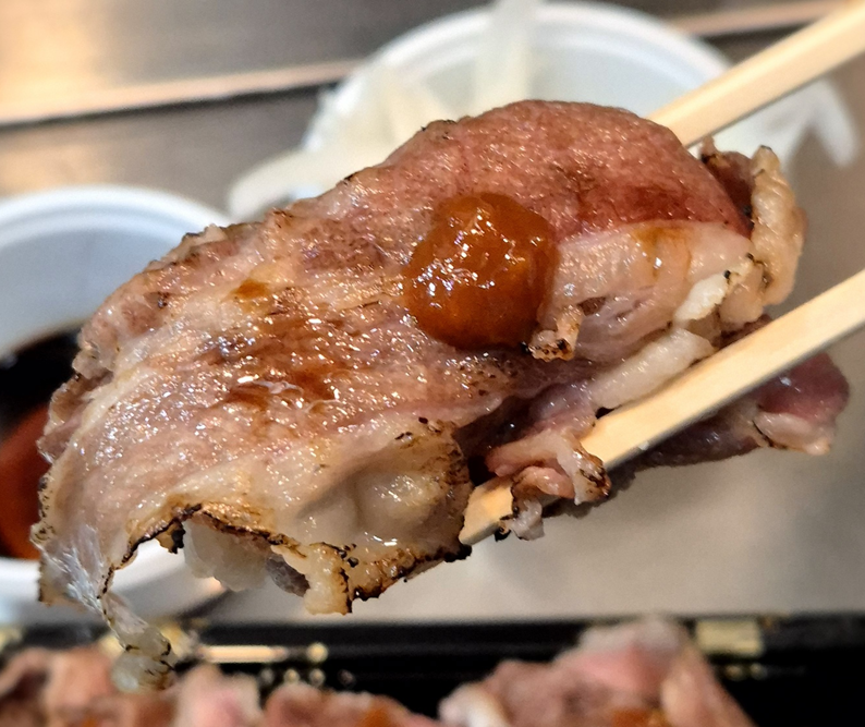 토치로 구워 주신 소고기 빛깔이 너무 좋지요.ㅎㅎ 소고기 위로 된장을 한 방울(?) 씩 올려 주시는데 한국인 입맛에 맞추신 사장님 방법인 것 같아요.ㅎㅎ