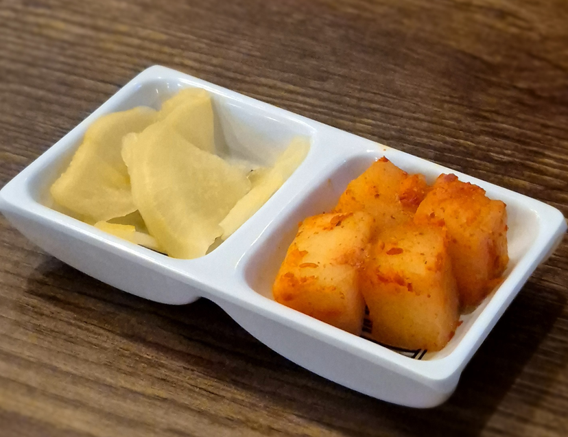 주문을 하면 반찬과 단품 메뉴에 나오는 장국을 가져다 주십니다.