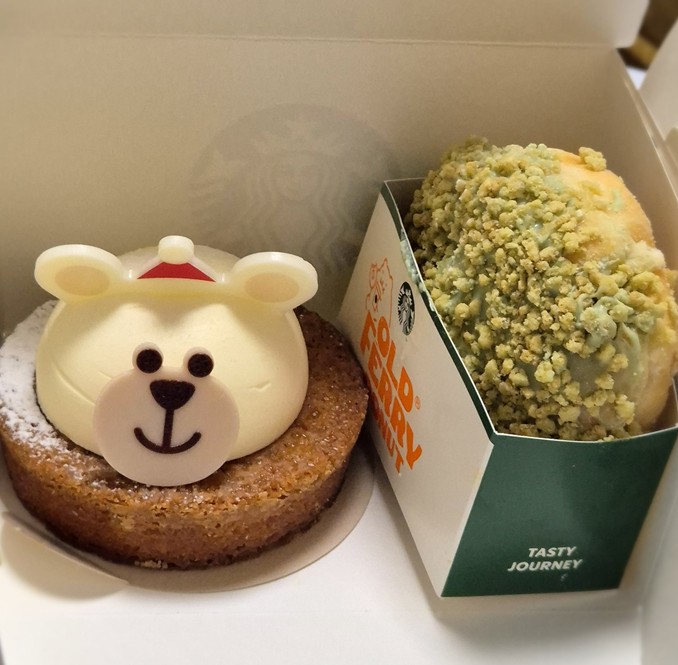 [스타벅스: 신메뉴] 더블 에스프레소 크림 라떼, 산타 베어리스타 케이크, OFD 피스타치오 크림 도넛