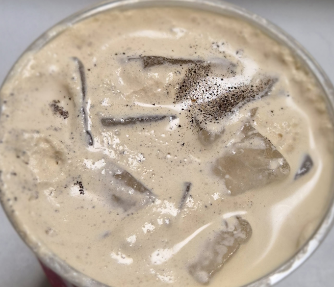두툼하게 올라간 커피크림 위에 커피칩이 뿌려져 있습니다. 사실 예쁘게 잘 뿌려져 있었는데 제가 너무 거칠게 뚜껑을 여는 바람에 섞여 버렸네요.ㅎㅎ