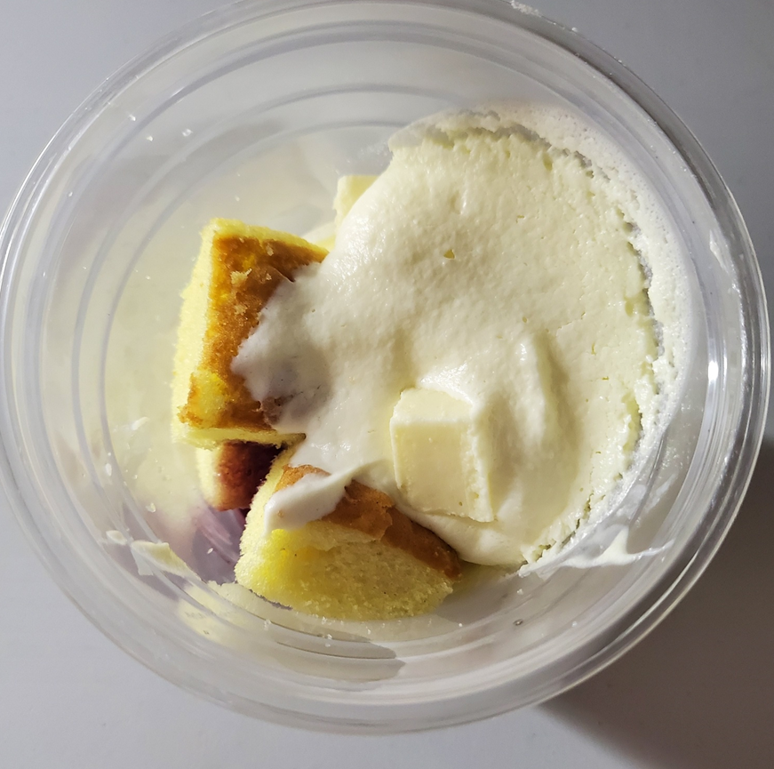 케이크 시트도 조각으로 있어서 떠먹기 편했습니다. ㅎㅎ 비주얼은 다소 좋아 보이지는 않네요.ㅎㅎ 케이크 시트와 생크림, 큐브 치즈와 함께 먹어보았습니다. 생크림, 큐브 치즈, 케이크 조합이면 말 다했죠!ㅎㅎ 맛이 있었습니다. ㅎㅎ 촉촉하고, 부드러움 그 자체였습니다. ㅎㅎ