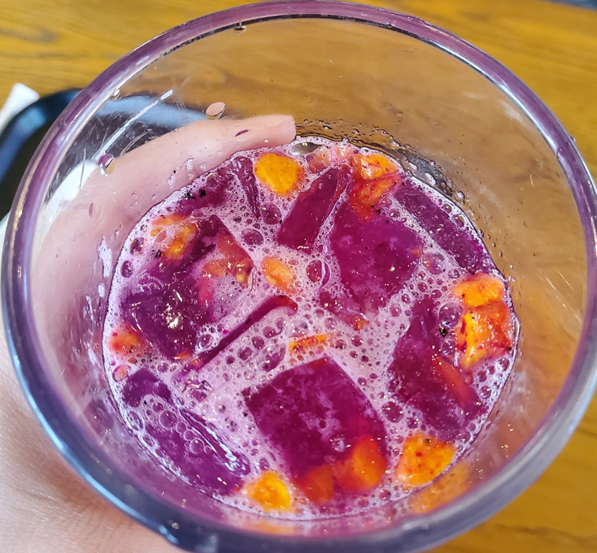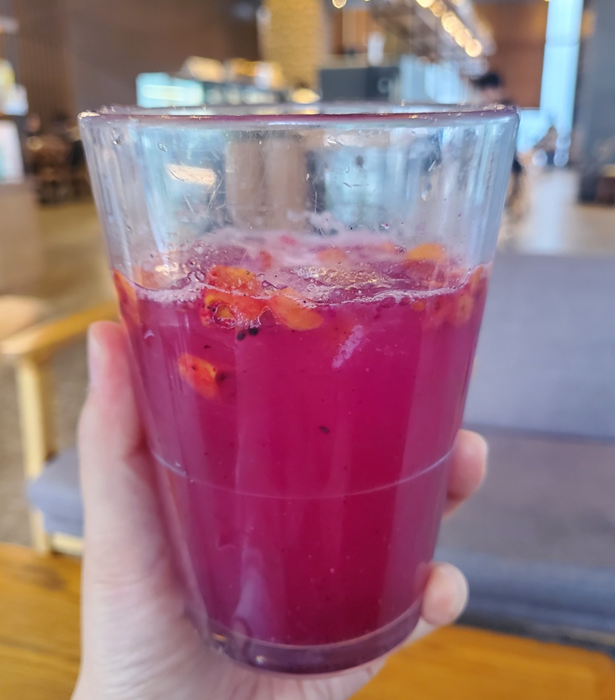 제가 빨대로 마시지 않아서 용과의 씨가 밑에 다 갈아앉아있더라고요.ㅎㅎㅎ 쭉쭉 마시면 용과 씨가 씹히는 식감도 느낄 수 있습니다. ㅎㅎ